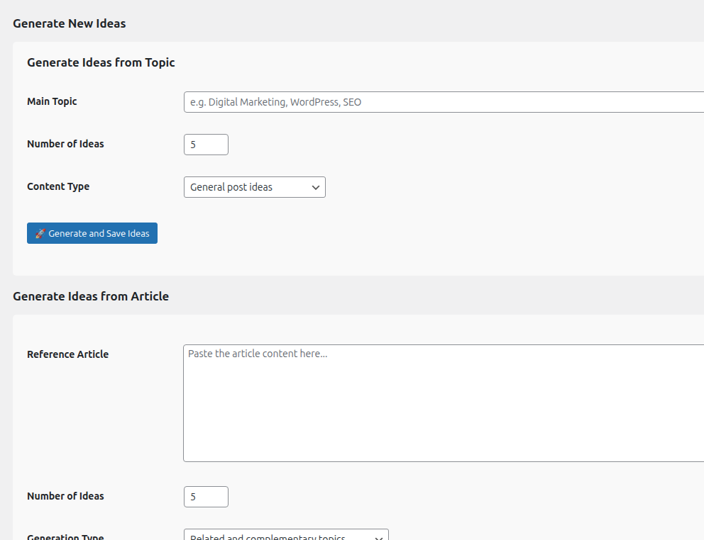 Básicamente, MaestrIA post generator puede generar ideas. En base a ellas puedes generar el contenido usando inteligencia artificial directamente desde tu panel de WordPress. No se trata de reemplazar tu creatividad, sino de potenciarla. Imagínate tener un asistente que te propone ideas, redacta borradores o incluso completa secciones de tus artículos. Así es como trabaja MaestrIA post generator: analizando el contexto que tú le das y generando texto coherente y bien estructurado en cuestión de segundos.